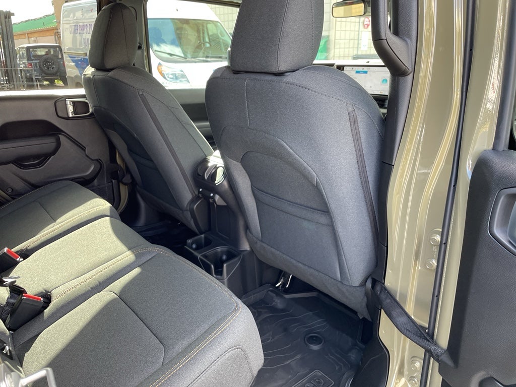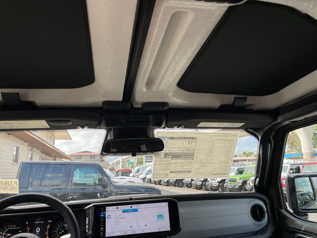 Convenience Group: Emergency/Assistance Call; Front Door Locks 2-Door Passive Entry; Remote Start System; Body Color Fender Flares (2-Piece); Cluster 7.0" TFT Color Display; Universal Garage Door Opener; Daytime Running Lamp System; Heated Front Seats; Air Conditioning W/Auto Temp Control; Heated Steering Wheel; Corning Gorilla Glass. Safety Group: Auto High Beam Headlamp Control; Blind Spot & Cross Path Detection; LED Taillamps; ParkSense Rear Park Assist System. Quick Order Package 24W Willys: LED Taillamps; Protection Sill Rails; 4-Wheel Drive Decal; Black Grille W/Gloss Black Rings; MOPAR All-Weather Slush Mats; LT255/75R17C OWL On/Off Road Tires; Body Color Fender Flares (2-Piece); Front Heavy Duty Red Accent Shock Absorbers; Daytime Running Lamps LED Accents; Front LED Fog Lamps; LED Premium Reflector Headlamps; E-Locker Rear Axle; Corning Gorilla Glass; Trailer Hitch Zoom; Class IV Receiver Hitch; Security Alarm; Mold In Color Bumper W/Gloss Black; Advanced Brake Assist; Willys Suspension; Heavy Duty Engine Cooling; Automatic Headlamps; Air Conditioning W/Auto Temp Control; 5. 950 lbs GVWR; Deep Tint Sunscreen Windows; Off-Road Plus Mode; 17" X 7.5" Painted Black Wheels; Willys Hood Decal; Full Speed Forward Collision Warning Plus; Rear Heavy Duty Red Accent Shock Absorbers; Front Door Locks 2-Door Passive Entry; Cluster 7.0" TFT Color Display; Power Heated Mirrors; Auxiliary Switches; Premium Wrapped Steering Wheel; Sun Visors W/Illuminated Vanity Mirrors. Black 3-Piece Hard Top. Alpine Premium Audio System. MOPAR Hardtop Headliner. 41. MOPAR Spray In Bedliner. MyFlexCare Service Plan. **Equipment listed is based on original vehicle build and subject to change. Please confirm the accuracy of the included equipment by calling the dealer prior to purchase.**