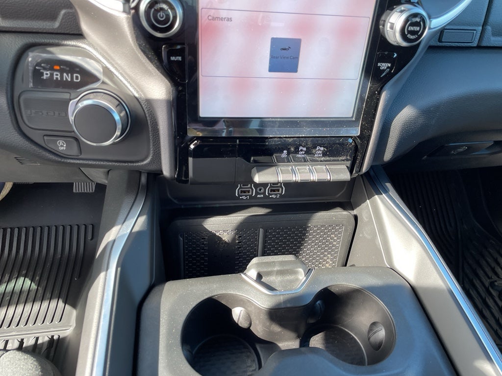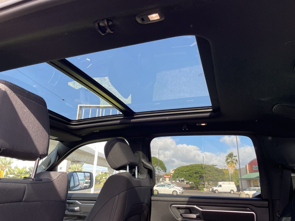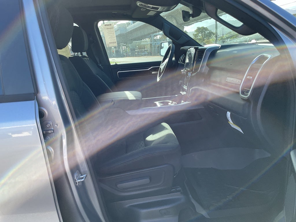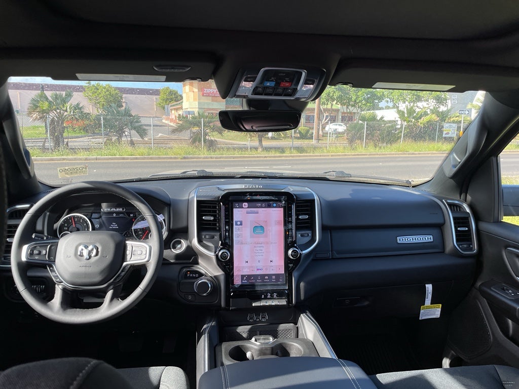Quick Order Package 21Z Big Horn. Big Horn Level 2 Equipment Group: Google Android Auto; SiriusXM Radio Service; USB Host Flip; Power Adjustable Pedals; Leather Wrapped Steering Wheel; Integrated Voice Command with Bluetooth®; 12" Touchscreen Display; Glove Box Lamp; Auto Power-Folding Mirrors; 115V Auxiliary Rear Power Outlet; Media Hub with 2 Charge Only USBs; Heated Front Seats; Security Alarm; Black Premium Power Mirrors; Apple CarPlay; Premium Overhead Console; 9 Amplified Speakers with Subwoofer; Disassociated Touchscreen Display; Body Color Fender Flares; Remote Tailgate Release; 115V Auxiliary Power Outlet; LED Dome Lamp with On/off Switch; Universal Garage Door Opener; 2nd Row in Floor Storage Bins; Sun Visors with Illuminated Vanity Mirrors; LED Footwell Lighting; Rear Window Defroster; Integrated Center Stack Radio; Rear View Auto Dim Mirror; Rear Power Sliding Window; Connectivity - US/Canada; GPS Navigation; 4G LTE Wi-Fi Hot Spot; GPS Antenna Input; Overhead LED Lamps; Exterior Mirrors with Heating Element; Auto Dim Exterior Driver Mirror; SiriusXM with 360L; Global Telematics Box Module; Connected Travel and Traffic Services; Heated Steering Wheel; Black Exterior Mirrors; Configurable Drive Mode; 400W Inverter; HD Radio; Deluxe Cloth Bucket Seats; Uconnect 5 Navigation with 12.0" Display Radio; Exterior Mirrors with Supplemental Signals; Steering Wheel Mounted Audio Controls; Exterior Mirrors Courtesy Lamps; Air Conditioning ATC with Dual Zone Control; Cluster 7.0" TFT Color Display; Convex Wide-Angle Exterior Mirror Insert. Night Edition: 275/55R20 OWL All Season Tires; Accent Color Premium Power Mirrors; Exterior Mirrors with Supplemental Signals; Black Headlamp Bezels; Exterior Mirrors Courtesy Lamps; Grille Black Surround Black Mesh; Auto Power-Folding Mirrors; Exterior Mirrors with Heating Element; 20" X 9.0" Aluminum Painted Clad Wheels; Auto Dim Exterior Driver Mirror; Black Exterior Truck Badging; Anti-Spin Differential Rear Axle; Accent Color Door Handles; Accent Color Tailgate Handle; Black Interior Accents; Dual Exhaust with Black Tips; Body Color Front Bumper; Convex Wide-Angle Exterior Mirror Insert; Body Color Rear Bumper with Step Pads; Black Tail Lamp Bezels; RAM Grille Badge - Black; Black Painted Exterior Mirrors Caps; Rear Wheelhouse Liners. Quick Order Package 23Z Big Horn. Dual-Pane Panoramic Sunroof. 9 Amplified Speakers with Subwoofer. Anti-Spin Differential Rear Axle. Billet Silver Metallic CC. MyFlexCare Service Plan. MOPAR Front and Rear Rubber Floor Mats. **Equipment listed is based on original vehicle build and subject to change. Please confirm the accuracy of the included equipment by calling the dealer prior to purchase.**