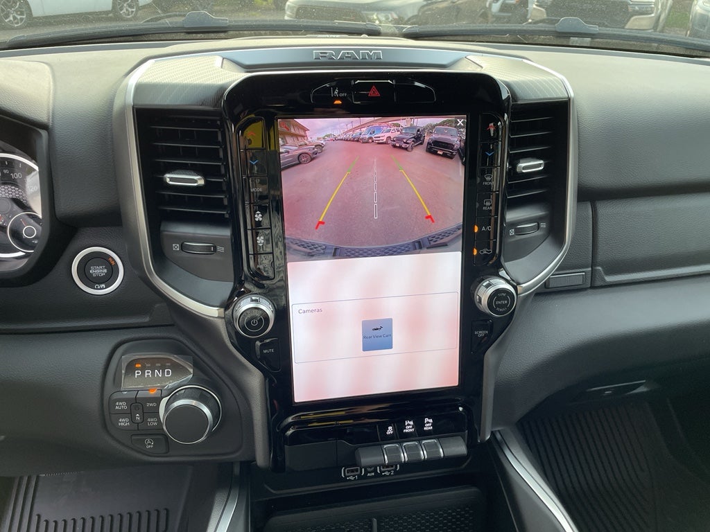 Quick Order Package 27Z Big Horn. Big Horn Level 2 Equipment Group: Google Android Auto; SiriusXM Radio Service; USB Host Flip; Power Adjustable Pedals; Leather Wrapped Steering Wheel; Integrated Voice Command with Bluetooth®; 12" Touchscreen Display; Glove Box Lamp; Auto Power-Folding Mirrors; 115V Auxiliary Rear Power Outlet; Media Hub with 2 Charge Only USBs; Heated Front Seats; Security Alarm; Black Premium Power Mirrors; Apple CarPlay; Premium Overhead Console; 9 Amplified Speakers with Subwoofer; Disassociated Touchscreen Display; Body Color Fender Flares; Remote Tailgate Release; 115V Auxiliary Power Outlet; LED Dome Lamp with On/off Switch; Universal Garage Door Opener; 2nd Row in Floor Storage Bins; Sun Visors with Illuminated Vanity Mirrors; LED Footwell Lighting; Rear Window Defroster; Integrated Center Stack Radio; Rear View Auto Dim Mirror; Rear Power Sliding Window; Connectivity - US/Canada; GPS Navigation; 4G LTE Wi-Fi Hot Spot; GPS Antenna Input; Overhead LED Lamps; Exterior Mirrors with Heating Element; Auto Dim Exterior Driver Mirror; SiriusXM with 360L; Global Telematics Box Module; Connected Travel and Traffic Services; Heated Steering Wheel; Configurable Drive Mode; 400W Inverter; HD Radio; Deluxe Cloth Bucket Seats; Uconnect 5 Navigation with 12.0" Display Radio; Exterior Mirrors with Supplemental Signals; Steering Wheel Mounted Audio Controls; Exterior Mirrors Courtesy Lamps; Air Conditioning ATC with Dual Zone Control; Cluster 7.0" TFT Color Display; Convex Wide-Angle Exterior Mirror Insert. Night Edition: 275/55R20 OWL All Season Tires; Accent Color Premium Power Mirrors; Exterior Mirrors with Supplemental Signals; Black Headlamp Bezels; Exterior Mirrors Courtesy Lamps; Grille Black Surround Black Mesh; Auto Power-Folding Mirrors; Exterior Mirrors with Heating Element; 20" X 9.0" Aluminum Painted Clad Wheels; Auto Dim Exterior Driver Mirror; Black Exterior Truck Badging; Anti-Spin Differential Rear Axle; Accent Color Door Handles; Accent Color Tailgate Handle; Black Interior Accents; Dual Exhaust with Black Tips; Body Color Front Bumper; Convex Wide-Angle Exterior Mirror Insert; Body Color Rear Bumper with Step Pads; Black Tail Lamp Bezels; RAM Grille Badge - Black; Black Painted Exterior Mirrors Caps. Quick Order Package 23Z Big Horn. 9 Amplified Speakers with Subwoofer. Anti-Spin Differential Rear Axle. MyFlexCare Service Plan. MOPAR Front and Rear Rubber Floor Mats. 3.92 Rear Axle Ratio. **Equipment listed is based on original vehicle build and subject to change. Please confirm the accuracy of the included equipment by calling the dealer prior to purchase.**