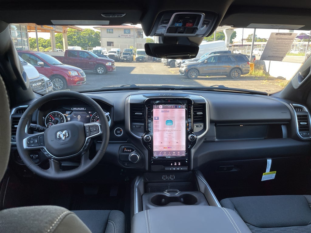 Quick Order Package 21Z Big Horn. Big Horn Level 2 Equipment Group: Google Android Auto; SiriusXM Radio Service; USB Host Flip; Power Adjustable Pedals; Leather Wrapped Steering Wheel; Integrated Voice Command with Bluetooth®; 12" Touchscreen Display; Glove Box Lamp; Auto Power-Folding Mirrors; 115V Auxiliary Rear Power Outlet; Media Hub with 2 Charge Only USBs; Heated Front Seats; Security Alarm; Black Premium Power Mirrors; Apple CarPlay; Premium Overhead Console; 9 Amplified Speakers with Subwoofer; Disassociated Touchscreen Display; Body Color Fender Flares; Remote Tailgate Release; 115V Auxiliary Power Outlet; LED Dome Lamp with On/off Switch; Universal Garage Door Opener; 2nd Row in Floor Storage Bins; Sun Visors with Illuminated Vanity Mirrors; LED Footwell Lighting; Rear Window Defroster; Integrated Center Stack Radio; Rear View Auto Dim Mirror; Rear Power Sliding Window; Connectivity - US/Canada; GPS Navigation; 4G LTE Wi-Fi Hot Spot; GPS Antenna Input; Overhead LED Lamps; 20" X 9" Aluminum Chrome Clad Wheels; Exterior Mirrors with Heating Element; Auto Dim Exterior Driver Mirror; SiriusXM with 360L; Global Telematics Box Module; Connected Travel and Traffic Services; Heated Steering Wheel; Black Exterior Mirrors; Configurable Drive Mode; 400W Inverter; HD Radio; Deluxe Cloth Bucket Seats; Uconnect 5 Navigation with 12.0" Display Radio; Exterior Mirrors with Supplemental Signals; Steering Wheel Mounted Audio Controls; Exterior Mirrors Courtesy Lamps; Air Conditioning ATC with Dual Zone Control; Cluster 7.0" TFT Color Display; Convex Wide-Angle Exterior Mirror Insert. Sport Appearance Package: 275/55R20 OWL All Season Tires; Grille Surround 1 Body Color Texture 1 Black; Body Color Tailgate Handle; Black Interior Accents; Body Color Front Bumper; Body Color Door Handles; RAM Grille Badge - Chrome; Body Color Rear Bumper with Step Pads. Quick Order Package 23Z Big Horn. 20" X 9" Aluminum Chrome Clad Wheels. 9 Amplified Speakers with Subwoofer. Diamond Black Crystal PC. MyFlexCare Service Plan. MOPAR Front and Rear Rubber Floor Mats. **Equipment listed is based on original vehicle build and subject to change. Please confirm the accuracy of the included equipment by calling the dealer prior to purchase.**