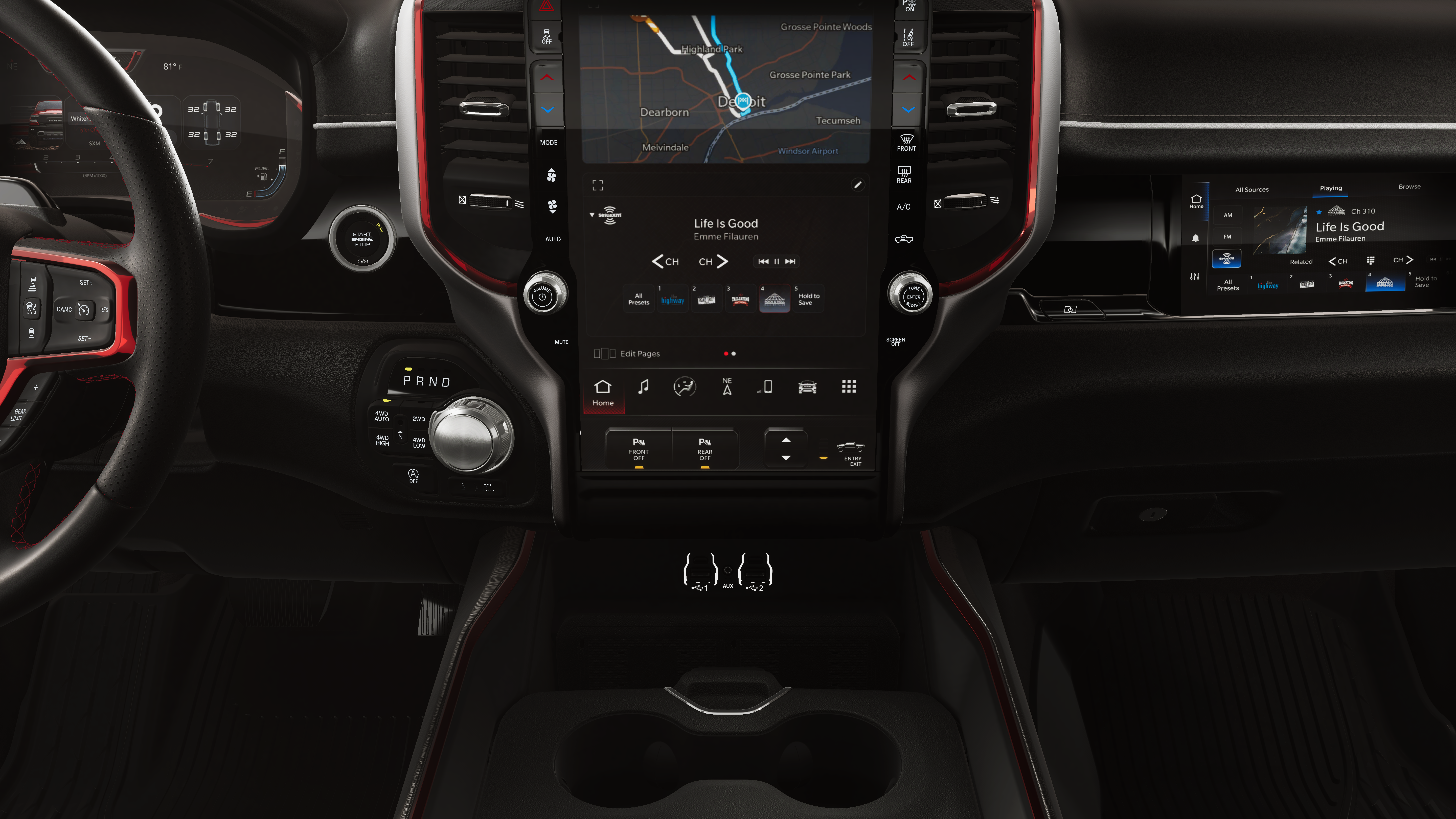 - 4-Wheel Disc Brakes w/4-Wheel ABS, Front Vented Discs, Brake Assist, Hill Descent Control, Hill Hold Control and Electric Parking Brake